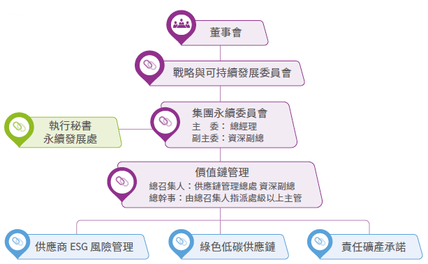 環旭電子的永續供應鏈管理計畫,由董事會授權董事長領導之戰略與可持續發展委員會執行與決策,以實現董事會監督 黄瓜视频网站,確保公司的政策和實施一致,並持續改進以達成長期目標,此外,集團永續委員會亦每半年追蹤並檢視供應鏈永續發展指標績效。